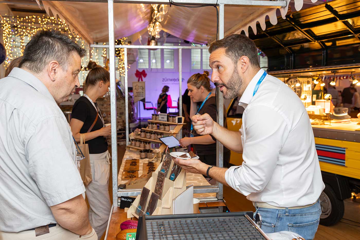 Nebst dem bunten Markttreiben fanden auch Betriebsführungen durch die Züriwerk-Produktion Altstetten statt. Den Abschluss des Abends genossen die Gäste bei feinem Streetfood und Getränken von XXL BBQ, Tenz Momo, Bierwerk Zürich, Nitro Most und Rutishauser/Divino – und auf jeden Fall in guter Gesellschaft.